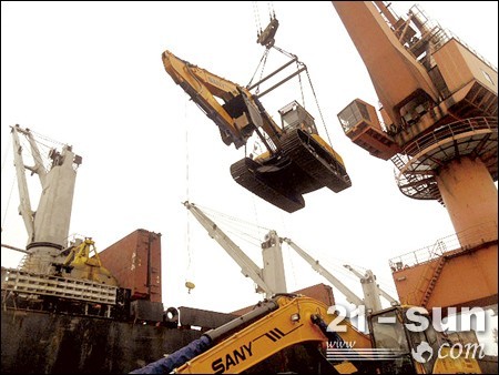 三一挖掘機裝船,準備發往非洲
